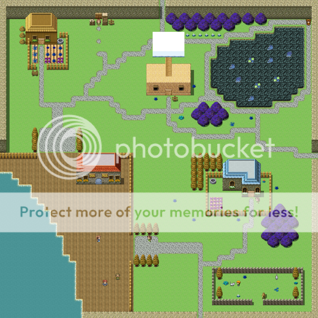 magic2345 252 Posted September 28, 2015 - First thing I noticed is that the map's quite big isn't it? Which makes it hard to populate. Perhaps consider decreasing the map size. Other than that, adding more clumps of trees, grass autotile (I see you didn't use it at all, you should, it helps XD), and more vegetation in general will make it seem more...town-ish. - For the plant recolors, the orange-tinted ones look fine, the other ones however...too neonish and actually looks kinda radioactive. XD - Adding elevation also helps a lot, Also, randomize the tree clumps more. - The houses look good though, perhaps a bit too many windows on some, but they're pretty good overall. - Just keep in mind that open fields are a drag to go through as the player, unless they're interesting with lots of things to see. I wouldn't recommend an open field though. Share this post Link to post Share on other sites